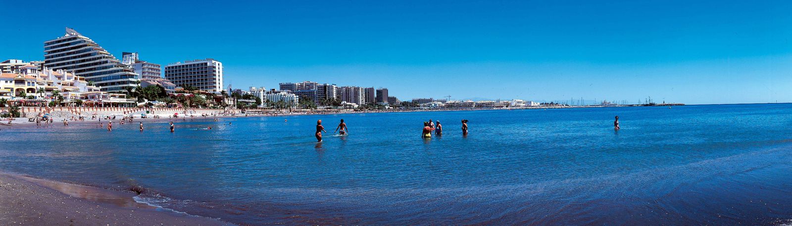 der Costa del Sol, zwischen Torremolinos und Fuengirola. Benalmadena Costa besitzt 9 km lange Strände mit ebenso langen Strandpromenaden.
